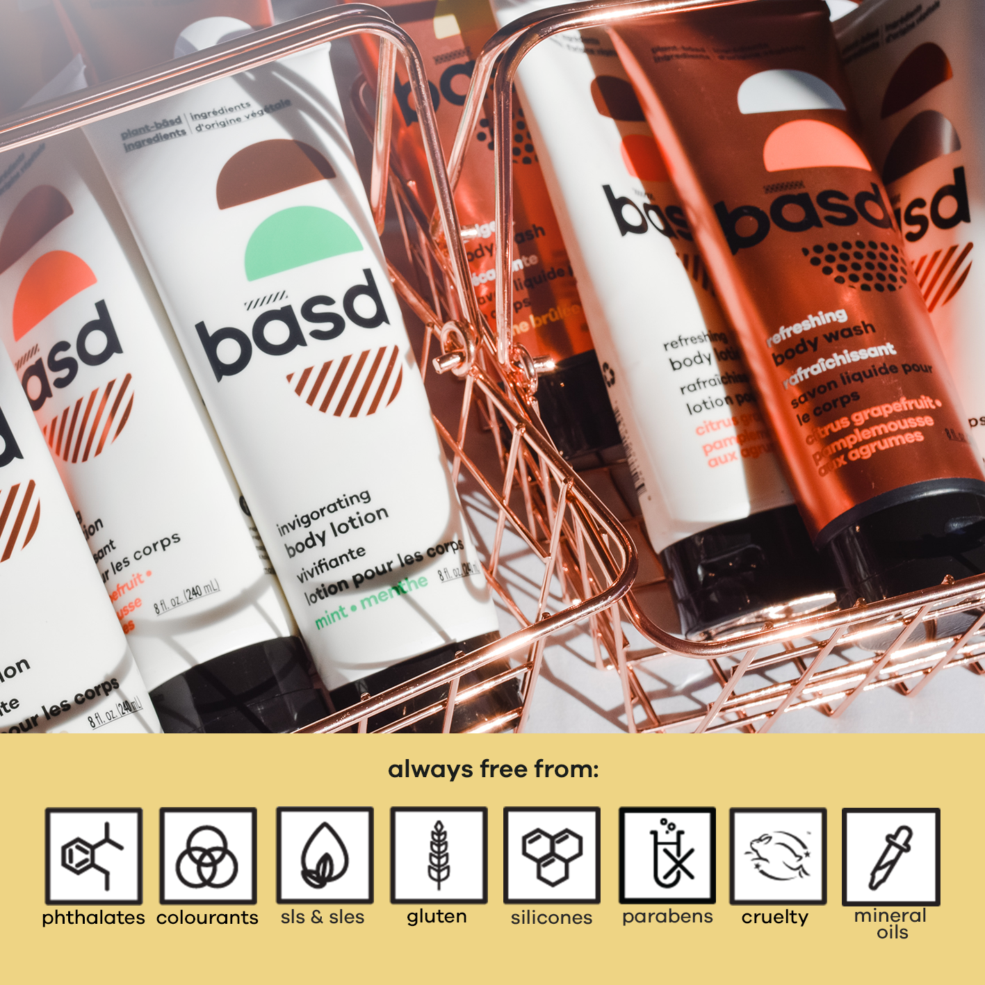 Founded in 2017 by Canadian co-owners Ashley Meston & Phil LeBeau, bāsd is a Canadian-born body care brand that brings an honest attitude to beauty.