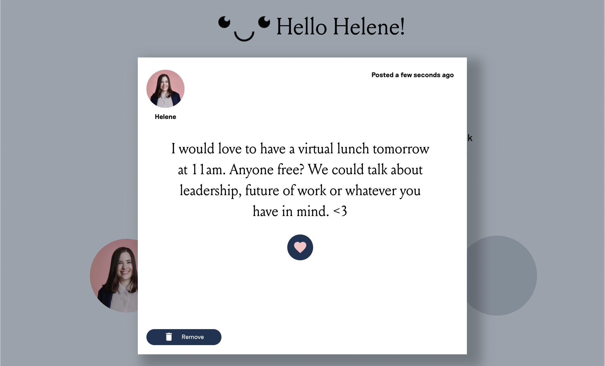 At the end of the day, you should do something like a workday closure walk-and-talk with colleagues or friends. We designed Shoutouts on Prönö just for this type of situation, so that people can find someone to talk about their day during a power walk, for example, beyond announcing their professional availability.